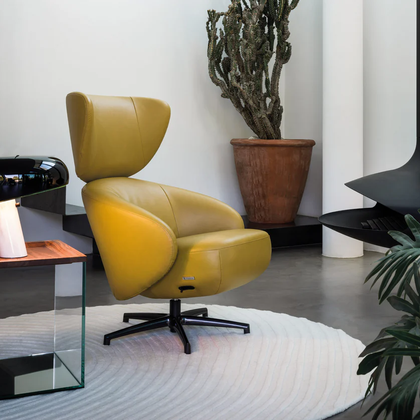 كرسي استرخاء بتصميم راقٍ يجمع بين الفخامة والراحة. يأتي بأبعاد (71 × 91/114 × 103/108 سم)، مما يوفر مساحة كافية للاسترخاء. مصنوع من ستاليستيل عالي الجودة وجلد فاخر، مما يضمن متانة وجودة ممتازة. لونه الأصفر اللامع يضفي لمسة مميزة وعصرية، مما يجعله خيارًا مثاليًا لأي غرفة معيشة أو منطقة استراحة.